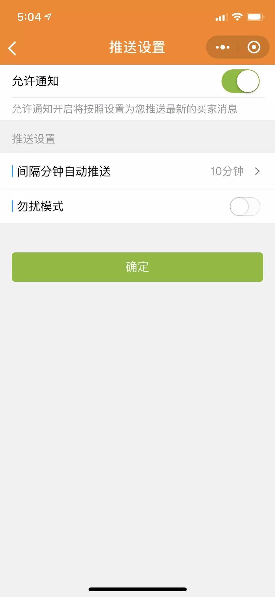 点击客服页面最下方的【推送设置】或点击我的页面的【设置】,可进入该推送设置界面。
