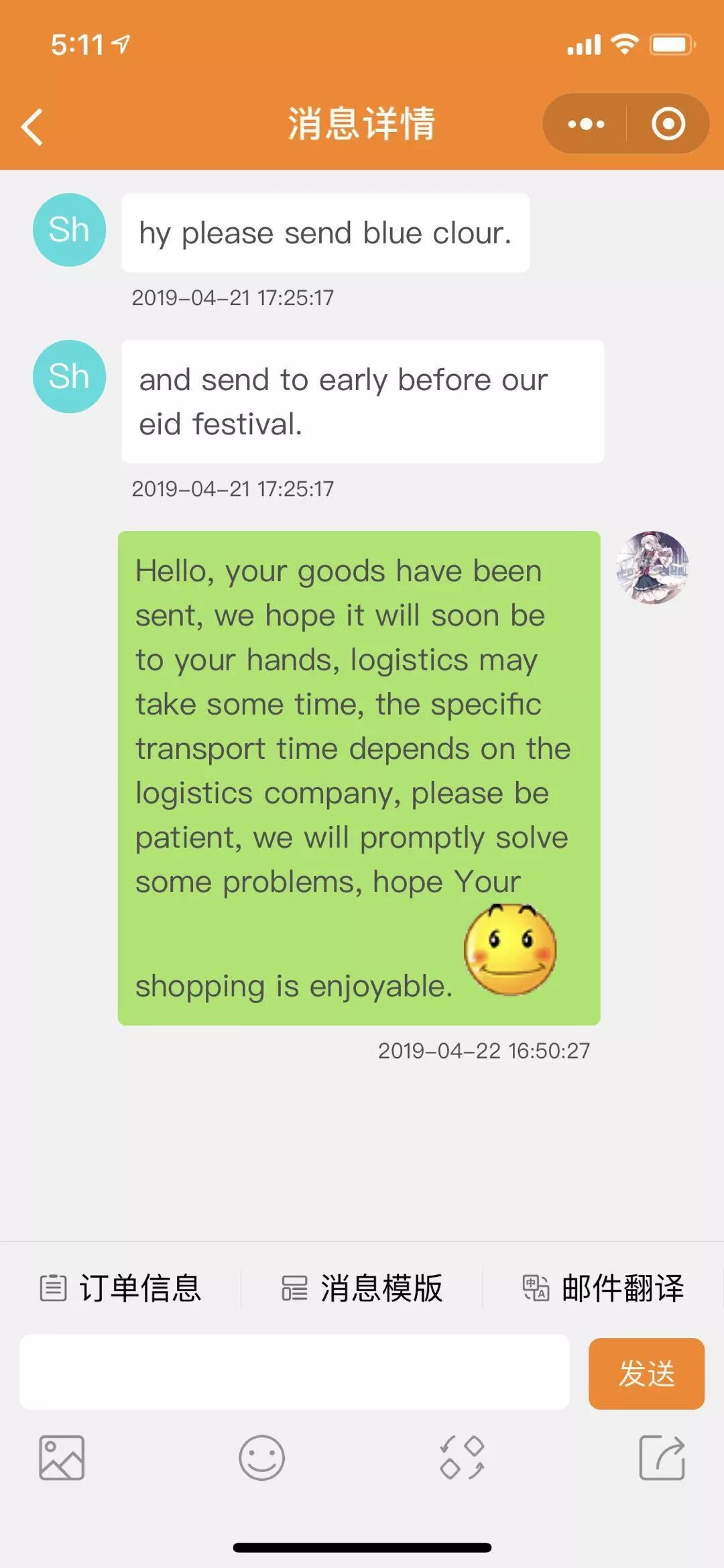 在该界面,可看到买家实时发送的消息,客服可直接以微信聊天的形式给买家回信,如左图所示。