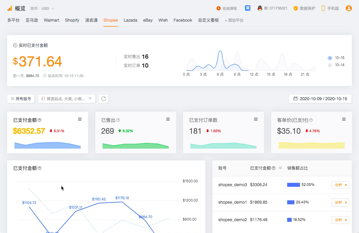 多平台多店铺 运营分析 团队绩效分析 广告分析 自动调价 数据驾驶舱