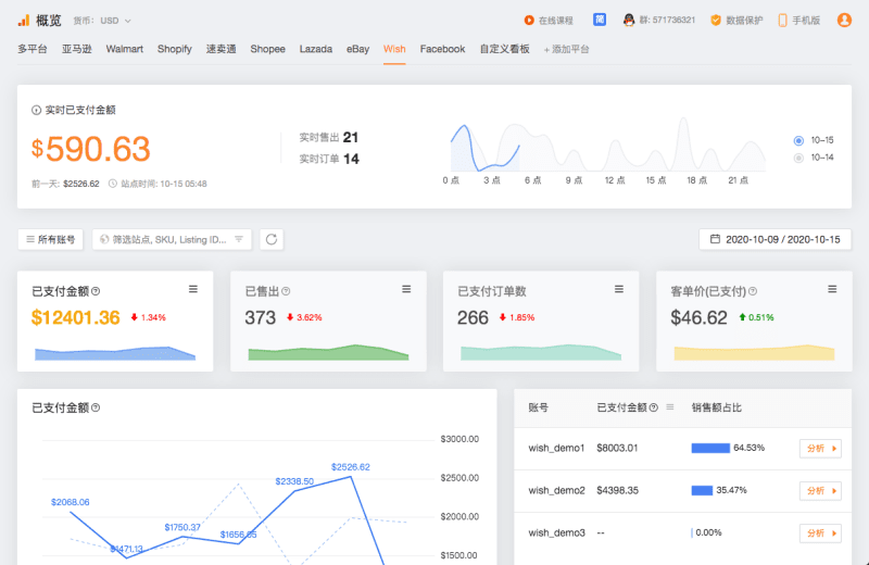 多平台多店铺 运营分析 团队绩效分析 广告分析 自动调价 数据驾驶舱